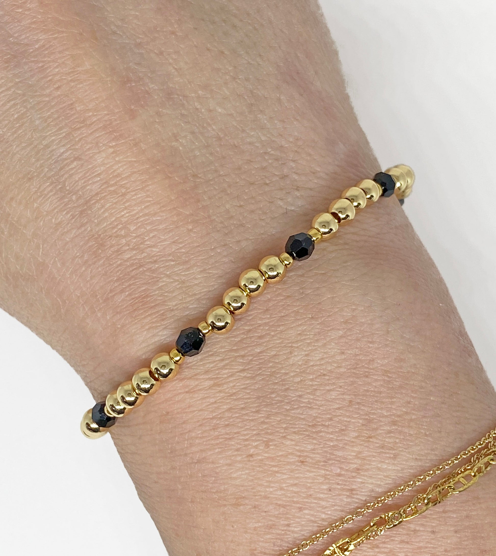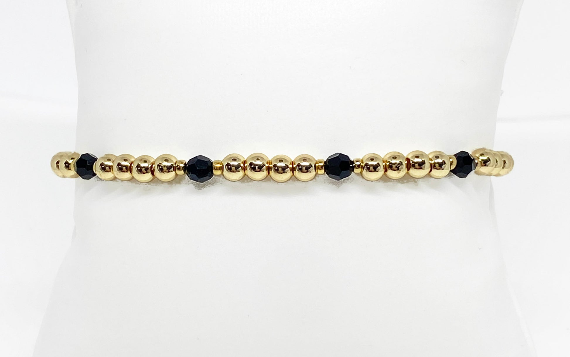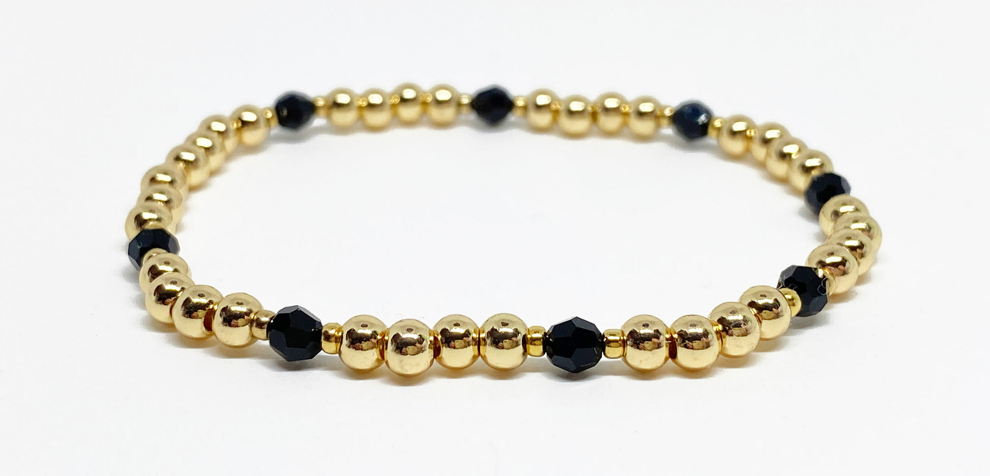 4mm Gold Beaded and Swarovski Round Crystal Bracelet in Black and Gold
