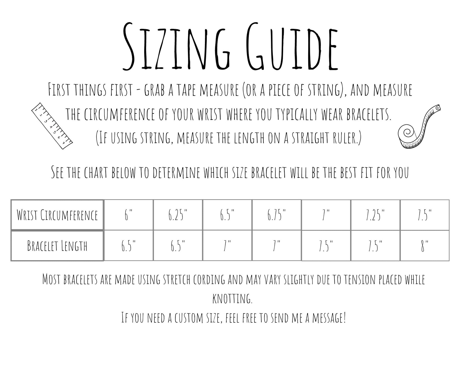 Most bracelets are strung on stretch cording. Please be careful when putting on or removing bracelets as excess tension may cause the cording to break.