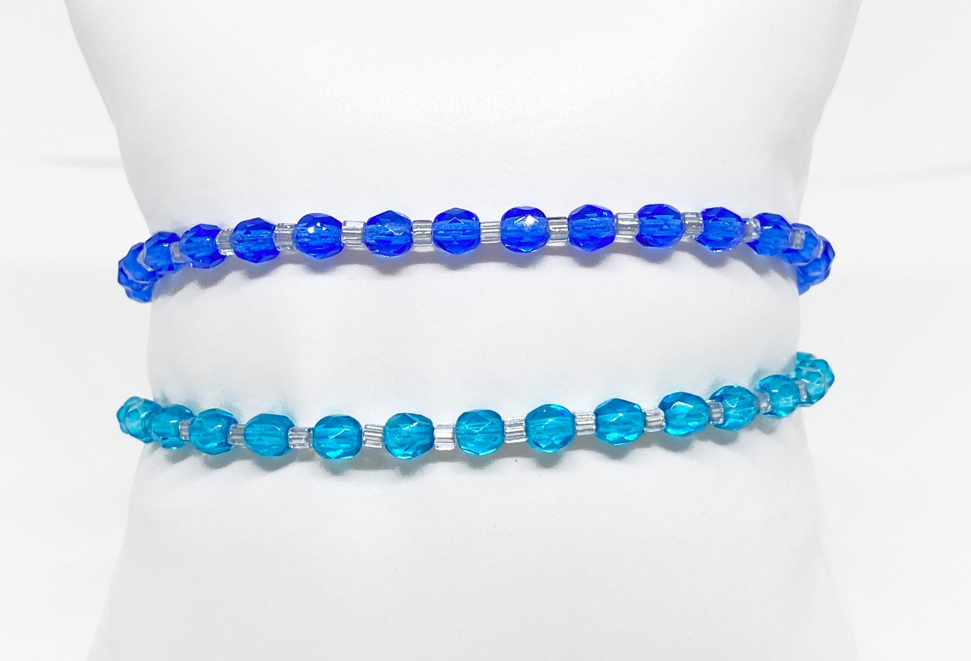 Mini Czech Glass Crystal 4mm Accent Bracelet in Aqua or Cobalt