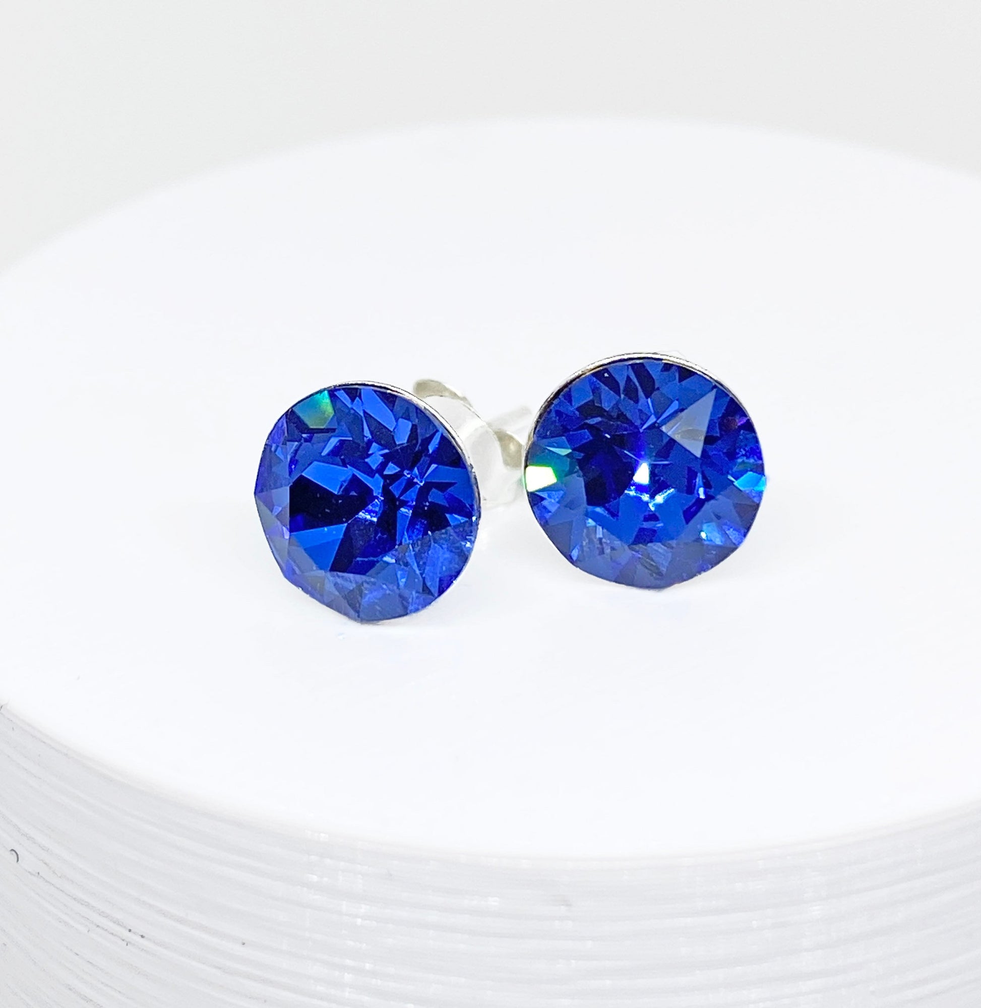 8mm Swarovski Crystal Stud Earrings in Sapphire, set in Sterling Silver
