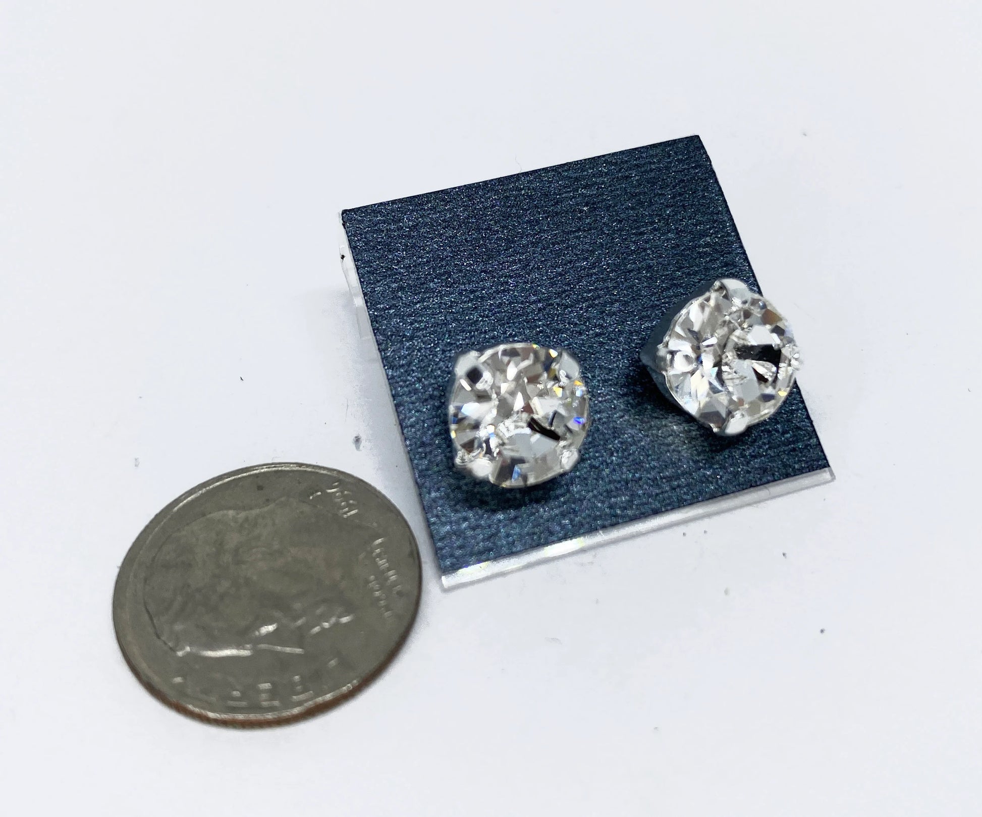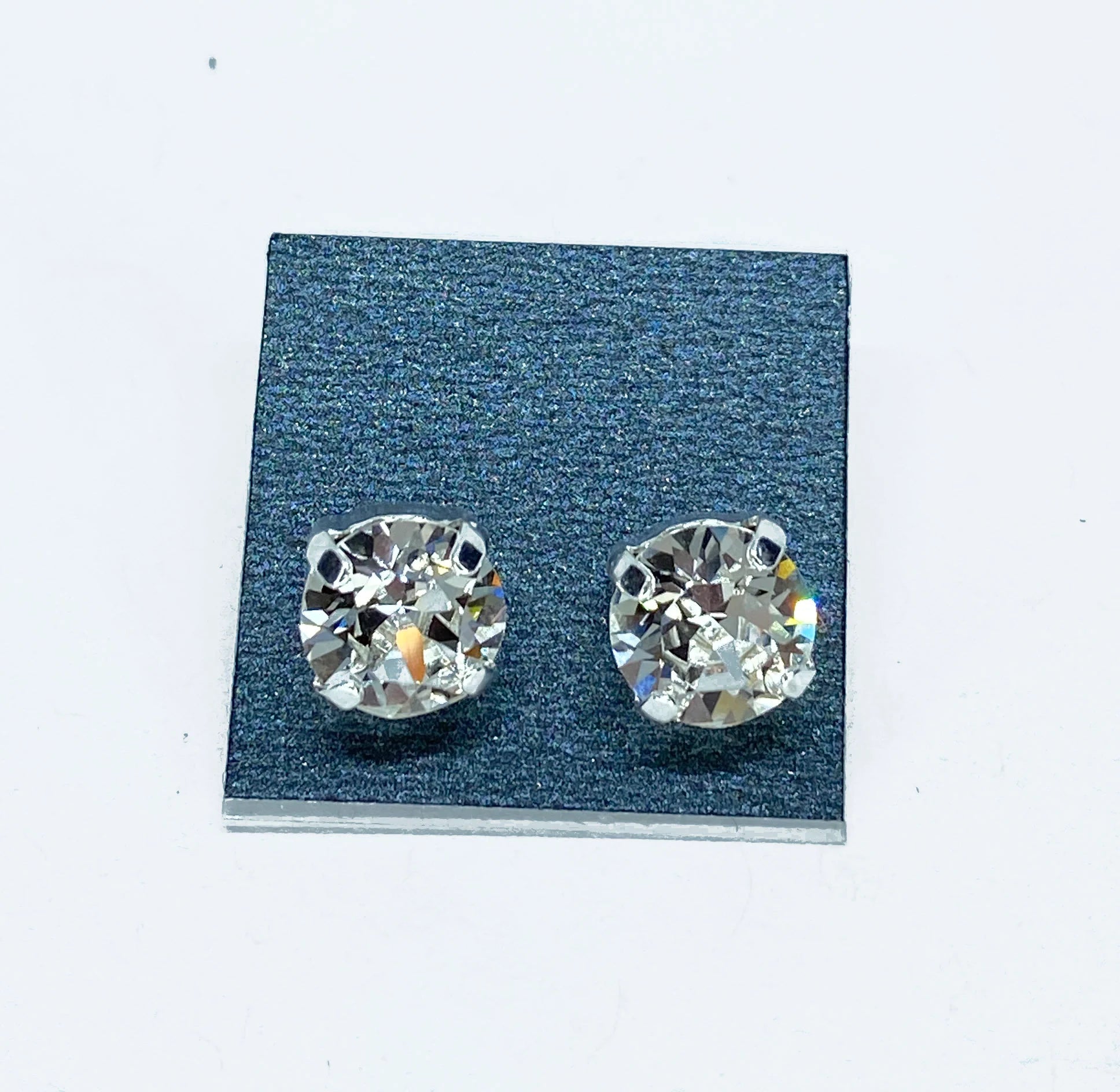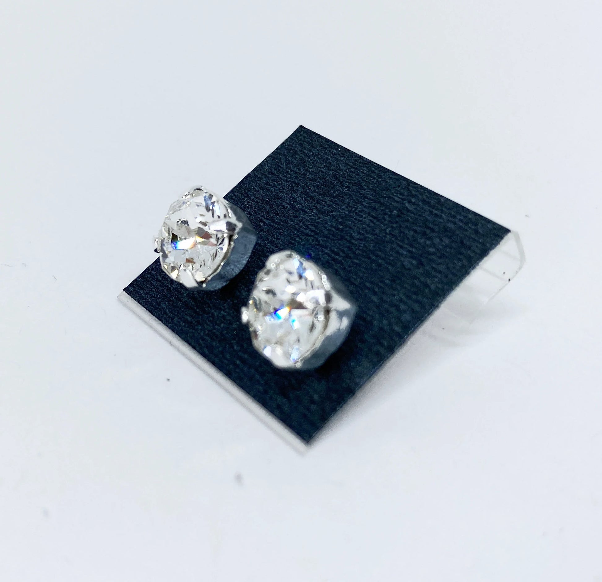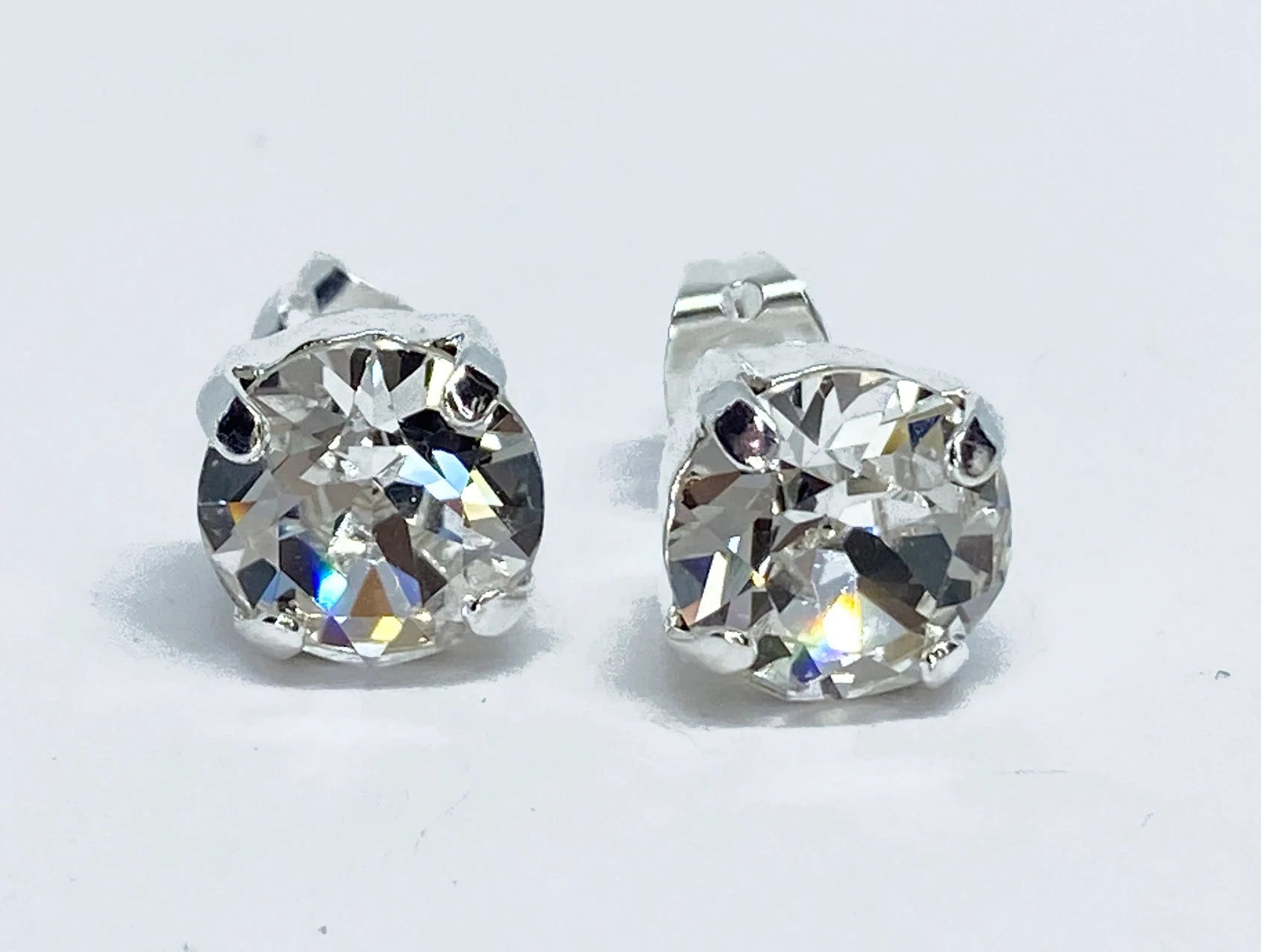 8mm Swarovski Crystal Chatons are set in Silver plated brass settings. 4 prongs hold each crystal in place for the most stunning studs! Push back closure for easy on.