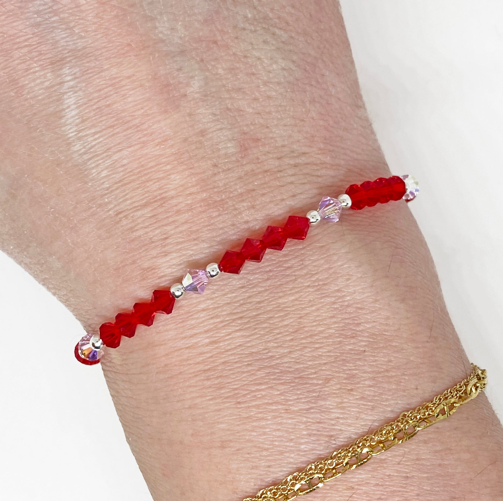 4mm Swarovski Crystal Beaded Stretch Bracelet in Sweet Scarlet