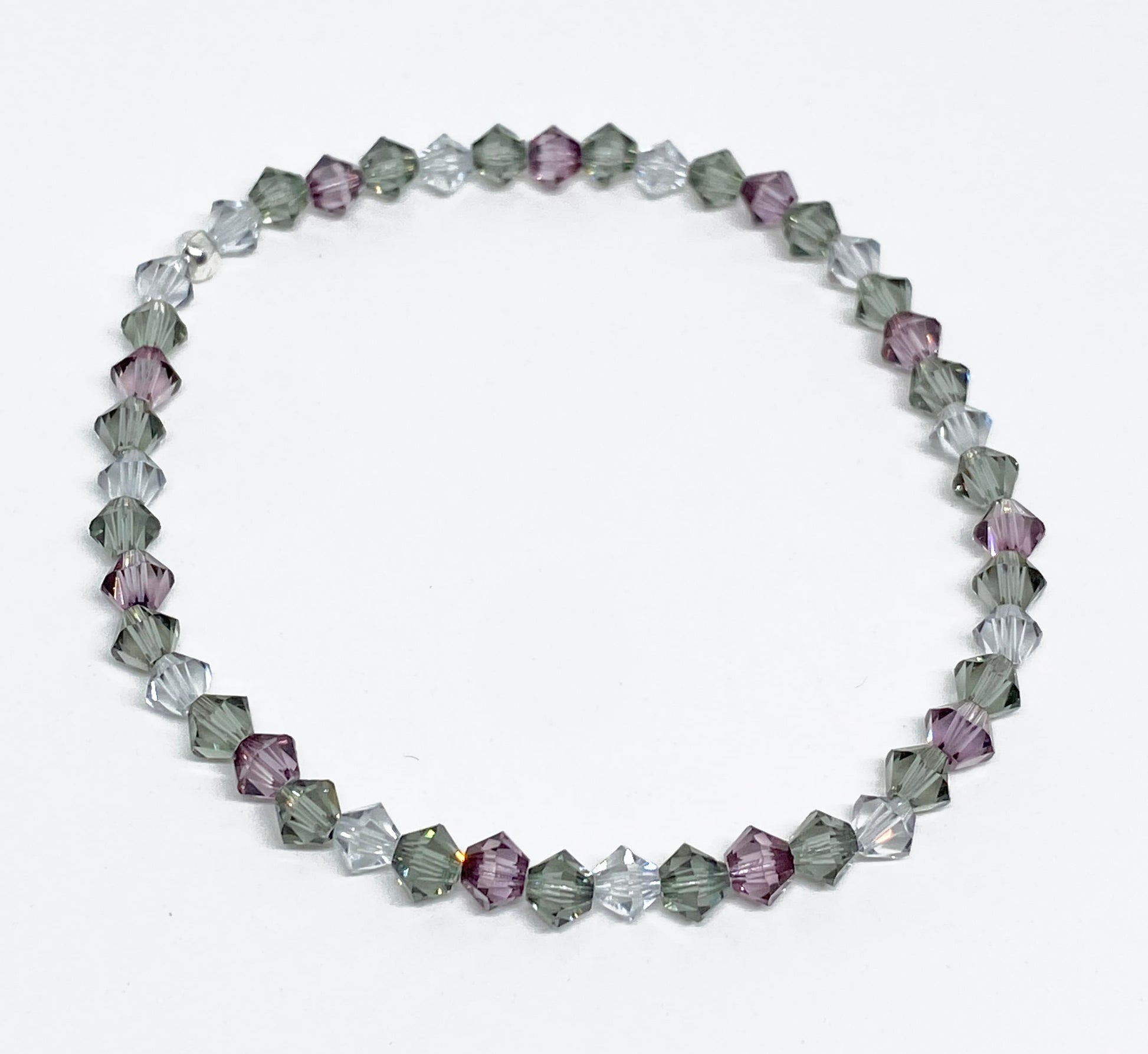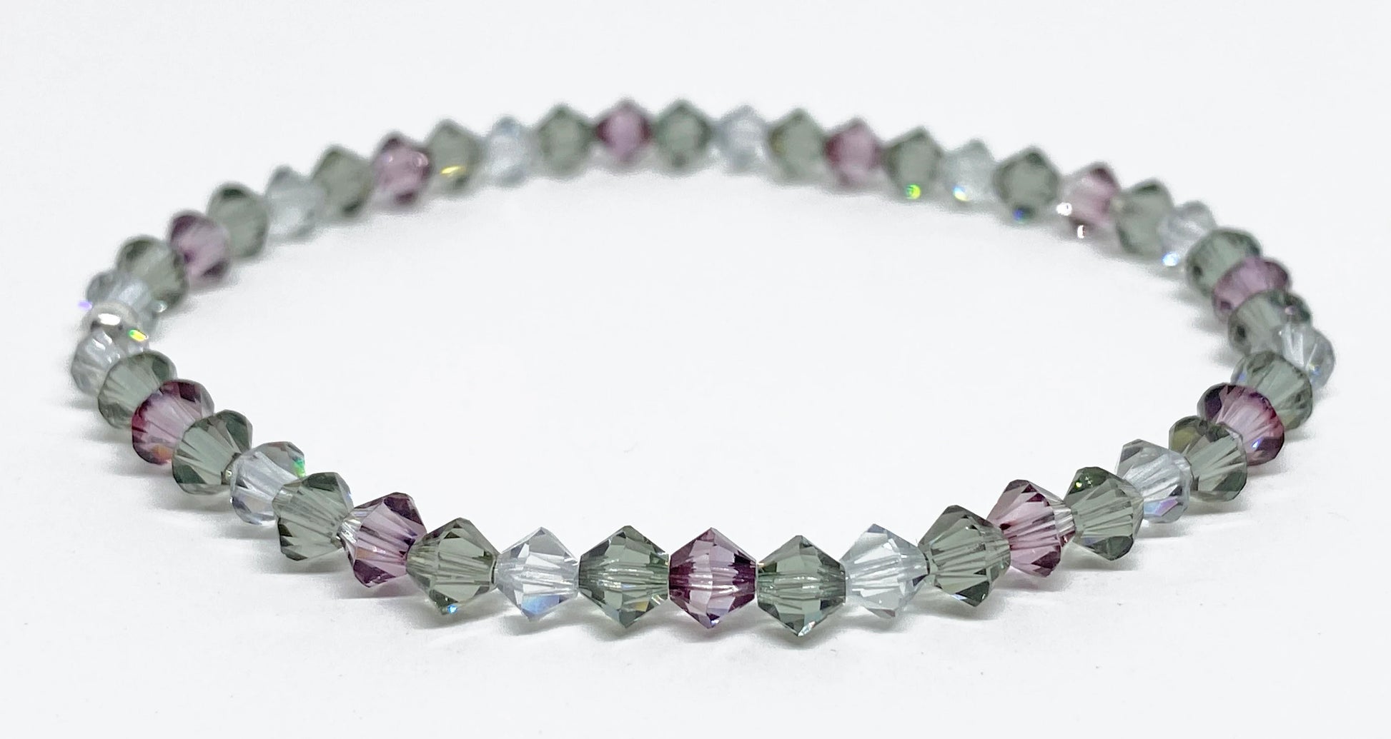 Black Diamond, Antique Pink, and Shadow Swarovski Crystals compliment one another on this subtle, yet gorgeous shimmer. Muted tones are perfect for everyday wear, while providing just enough sparkle to accentuate your bracelet stack.